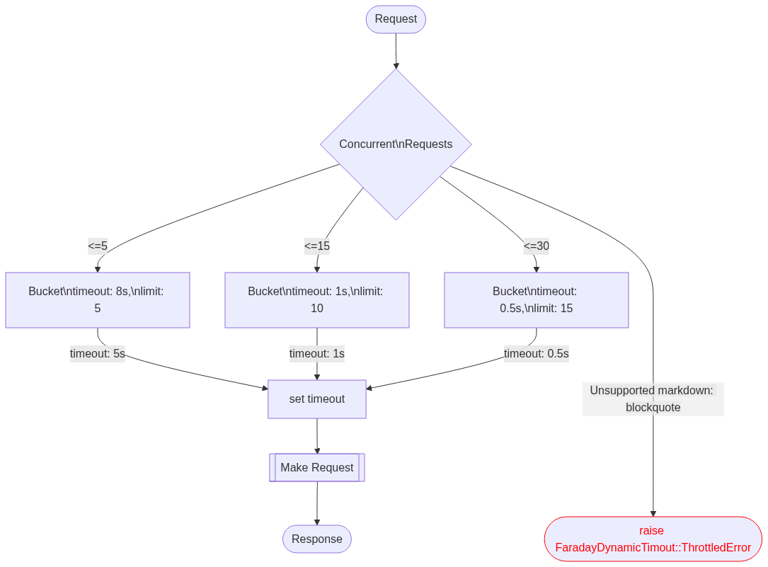 This gem provides Faraday middleware that allows you to set dynamic timeouts on HTTP requests based on the current number of requests being made to an endpoint. This allows you to set a long enough timeout to handle your slowest requests when the system is healthy, but then progressively set shorter timeouts as load increases so requests can fail fast in an unhealthy system.