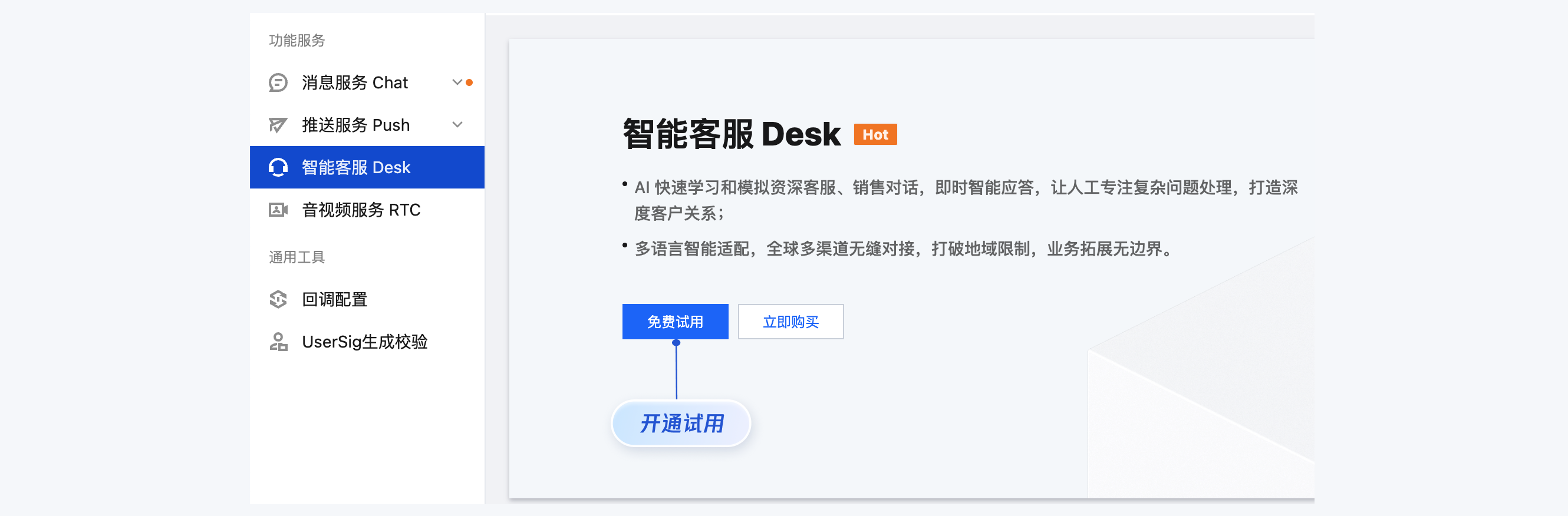 [腾讯云智能客服(Desk)](https://cloud.tencent.com/document/product/269/96056)